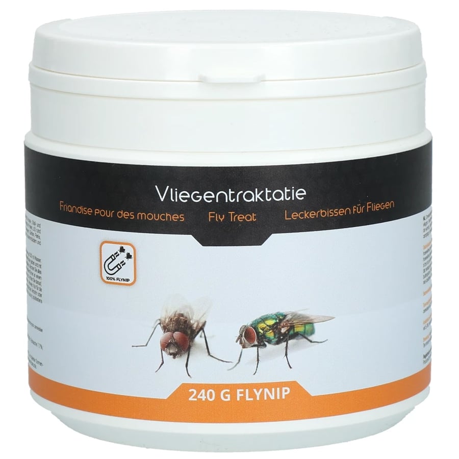 Strooi naar eigen inzicht op een lijmplaat, lijmvliegenvanger of in de opvanglade van een vliegenlamp. Werkt tevens uitstekend in combinatie met een bestrijdingsmiddelen die aangebracht worden op karton, muren, melkstallen en paardenstallen.