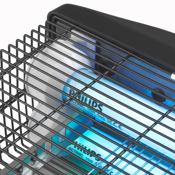 De vliegenlamp is voorzien van Philips lampen die een langere levensduur hebben dan andere lampen. De vliegenlamp trekt vliegen aan met zijn blauwe licht en doodt de vliegen snel. Het reinigen en onderhouden van de vliegenlamp is erg eenvoudig, dankzij een uitschuifbaar bakje.